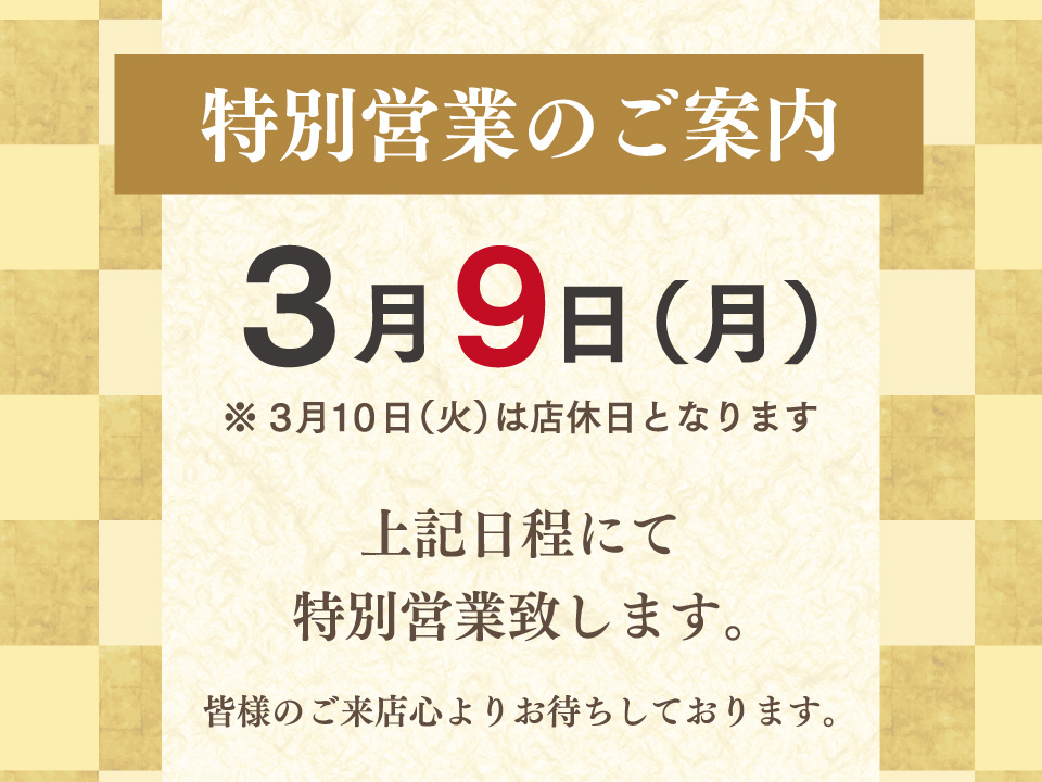 3月9日(月)特別営業のご案内